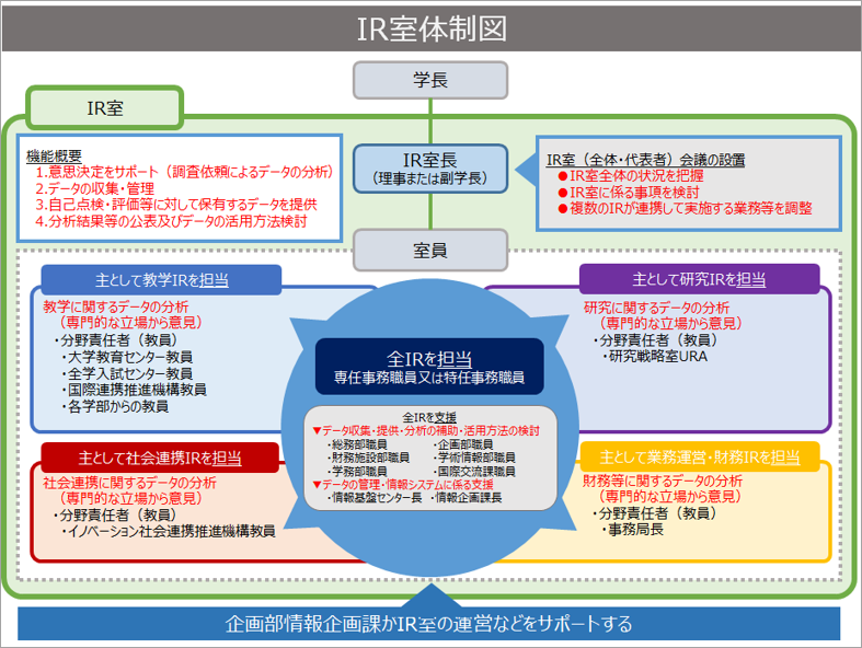 以上の観点から、平成28年10月よりIR(Institutional Research)室が設置され、IR活動を開始しました。